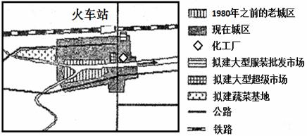 (3)随着城市社会经济的发展,拟在图示地区建大型服装批发市场、大型超级市场、蔬菜基地。请分析其选址的条件。(7分)