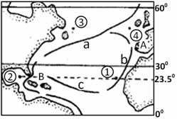 (1)图中a、b、c三条洋流的名称分别是 、__________、__________。