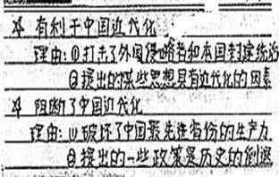 图为一位同学的课堂笔记,记录了 对某一历史事件的不同评价。据此,推断他学习的内容是: