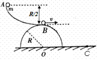 如图所示,光滑半球的半径为R,球心为O,其上方有一个光滑曲面轨道AB,高度为R/2.轨道底端水平并与半球顶端相切.质量为m的小球由A点静止滑下.小球在水平面上的落点为C,则 ( )