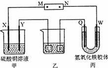 如下图所示,X、Y、Q、W都是惰性电极,将电源接通后,W极附近颜色逐渐加深。下列说法中不正确的是( )