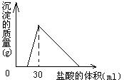 (4)将一定质量的钠铝合金置于水中,合金全部溶解,得到20ml pH=14的溶液,然后用2mol/L盐酸滴定,可得沉淀质量与消耗的盐酸体积关系如右图:则反应过程中产生氢气的总体积为 L(标准状况)。