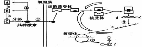 (1)结构A是 ,结构C是 ;结构A、B、C中具有神经传导和激素分泌双重功能的是 。物质b是 ,物质e是 。
