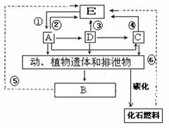 (1)图中属于生物群落的是 (填字母)。碳在生物群落和无机环境之间主要是以 的形式进行循环,而在生物群落内部则主要是以 的形式进行流动。据图(碳循环示意图)提出二项实现“低碳”承诺、缓减温室效应的关键措施: