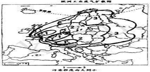42.(10分) 读欧洲工业废气扩散图,回答: