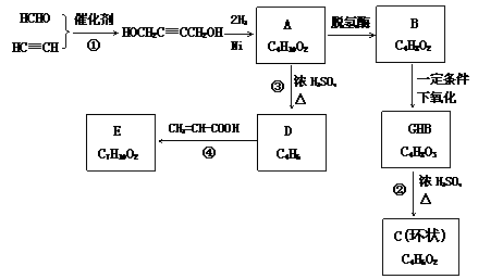 物质A在体内脱氢酶的作用下会氧化为有害物质GHB。下图是关于物质A的一种制备方法及由A引发的一系列化学反应。