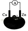 .利用Cu、Zn两种金属便可以完成能量的转化,例:将铜片和锌片用导线连接后插入苹果里,如右图所示,电流计指针发生偏转。