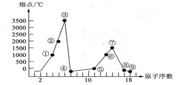 24.下图是部分短周期元素的单质熔点的变化图,根据此图,填写下列空格: