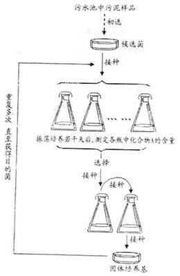 6.某化工厂的污水池中,含有一种有害的、难于降解的有机化合物A,研究人员用化合物A、磷酸盐、镁盐以及微量元素配制的培养基,成功地筛选到能高效降解化合物A的细菌(目的菌)。实验的主要步骤如下图所示。请分析回答问题: