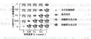 (3)在再分化阶段所用的培养基中,含有植物激素X和植物激素Y,逐渐改变培养基中这两种植物激素的浓度比,未分化细胞群的变化情况如下图所示,据图指出两种激素的不同浓度比与形成芽、根、愈伤组织的关系: