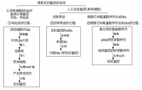 2.原核基因采取直接分离获得,真核基因是人工合成。人工合成目的基因的常用方法有反转录法_和化学合成法_。