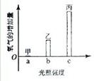 19.(海南卷)取某种植物生长状态一致的新鲜叶片,用打孔器打出若干圆片,圆片平均分成甲、乙、丙三组,每组各置于一个密闭装置内,并分别给予a、b、c三种不同强度的光照,其他条件一致。照光相同时间后,测得各装置内氧气的增加量如图所示,下列