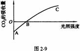 23. 如图2-9为原来置于黑暗环境中的绿色植物曝于光下后,根据其吸收CO2量制成的曲线。下列叙述正确的是( )