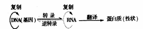 (5)RNA-→DNA:少数病毒在其宿主细胞中的逆转录过程。例:某些致癌病毒、爱滋病病毒。