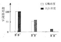 (3)右图表示不同基因型小鼠血浆中G酶浓度和H2S浓度的关系。B-B-个体的血浆中没有G酶而仍有少量H2S产生,这是因为 。通过比较B+B+和B+B-个体的基因型、G酶浓度与H2S浓度之间的关系,可得出的结论是 。