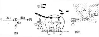 日本明蟹壳色有三种:灰白色、青色和花斑色。其生化反应原理如图l所示。基因A控制合成酶1,基因B控制合成酶2,基因b控制合成酶3,两对基因独立遗传。基因a控制合成的蛋白质无酶l活性,基因a纯合后,物质甲(尿酸盐类)在体内过多积累,导致成体会有50%死亡。甲物质积累表现为灰白色壳,丙物质积累表现为青色壳,丁积累表现为花斑色壳。基因控制酶合成的大致过程如图2。请回答下列问题: