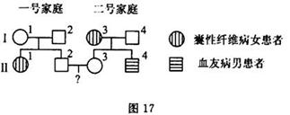 (3)图17是囊性纤维病(基因为A、a)和血友病(基因为H、h)的家系图,请据图回答: