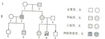 ② 2与Ⅱ3结婚,生育一个男孩两病兼患的几率为 (用分数表示)。