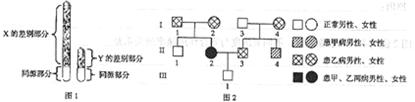 (1)图1是人类性染色体的差别部分和同源部分的模式图。有一种遗传病,仅有父亲传给儿子不传给女儿,该致病基因位于图中的 部分。