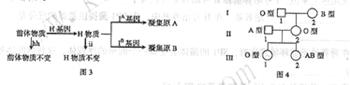 2)某家系的系谱图和如图4所示。Ⅱ-2的基因型为hhIBi,那么Ⅲ-2的基因型是 。