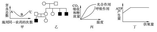 D. 丁图中,曲线表示动物肌肉细胞内ATP产生量与O2供给量之间的关系