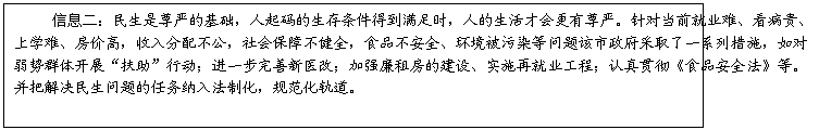 (2)从政府职能的角度,选择材料二中民生问题的一个方面向该市政府提出合理化建议。(6分 至少两条)