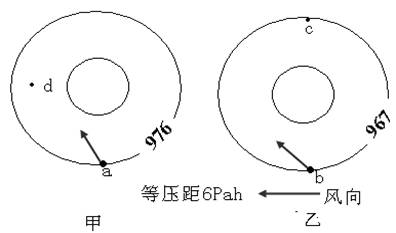 4、该气压系统出现的月份及c、d处的风向分别是:( )