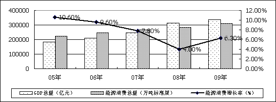 材料一:05-09年我国GDP总量、能源消费总量及能源消费增长率情况表