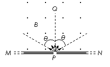 19. 如图所示,MN是一荧光屏,当带电粒子打到荧光屏上时,荧光屏能够发光.MN的上方有磁感应强度为B 的匀强磁场,磁场方向垂直纸面向里.P为屏上的一小孔,PQ与MN垂直.一群质量为m、带电荷量q的粒子(不计重力),以相同的速率v,从P处沿垂直于磁场方向射入磁场区域,且分布在与PQ夹角为θ的范围内,不计粒子间的相互作用.则以下说法正确的是( )