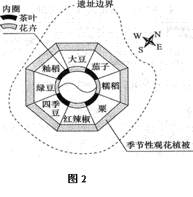我国某城市的年降水量近1400毫米,年均温约1 6°C。该城市中心区有我国某朝代皇帝“躬耕"以示“劝农”的籍田遗址。近期该城市在城区仿建了八卦农田约l 5 0亩。读图2回答3-4题。