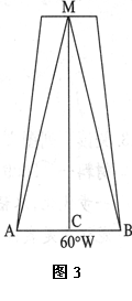 图3为经纬网的一部分,其中MA、MB为晨昏线,A点当地时间为l 9时20分。读图回答5-7题。
