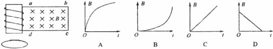 21.如图所示,竖直放置的螺线管与导线abcd构成回路,导线所在区域内有垂直纸面向里的变化的匀强磁场,螺线管下方水平桌面上有一导体圆环,导线abcd所围区域内磁场的磁感强度按下列哪一图线变化时,导体圆环将受到向下的磁场作用力: