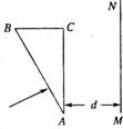 它对红光的折射率为n1,对紫光的折射率为n2,在距AC 边d 处有一与AC平行的光屏,现有由以上两种色光组成的很细的光束垂直AB边射入棱镜。