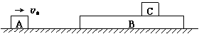 (2)如图所示,木块A质量为mA = 1kg,足够长的木板B质量mB = 4kg,质量为mC=2kg的木块C置于木板B上,水平面光滑,B、C之间有摩擦。现使A以υ0=10m/s的初速度向右运动,与B碰撞后以4m/s速度弹回。求: