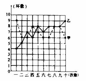 为迎接“城运会”,某射击集训队在一个月的集训中,对甲、乙两名运动员进行了10次测试,成绩如图所示: