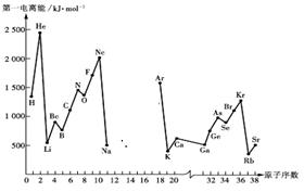 8.第一电离能I1是指气态原子X(g)处于基态时,失去一个电子成为气态阳离子X+(g)所需的能量。下图是部分元素原子的第一电离能I1随原子序数变化的曲线图(其中12号至17号元素的有关数据缺失)。