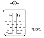 如图所示,烧杯内盛有浓HNO3,在烧杯中放入用导线相连的铁、铅两个电极,已知原电池停止工作时,Fe、Pb都有剩余。下列说法正确的是