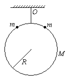 如图所示,有一质量为M的大圆环,半径为R,被一轻杆固定后悬挂在O点,有两个质量为m的小环(可视为质点),同时从大环两侧的对称位置由静止滑下.两小环同时滑到大环底部时,速度都为v,则此时大环对轻杆的拉力大小为( )
