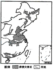 涝渍灾害是我国主要自然灾害之一。右图是我国涝渍灾害主要分布地区示意图。读图回答下列问题。(8分)