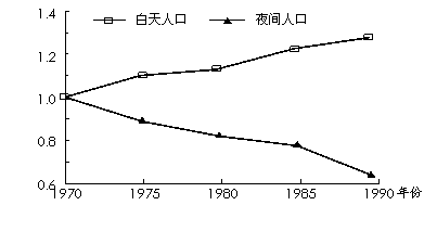 9.中心商务区白天人口与夜间人口密度的变化直接反映