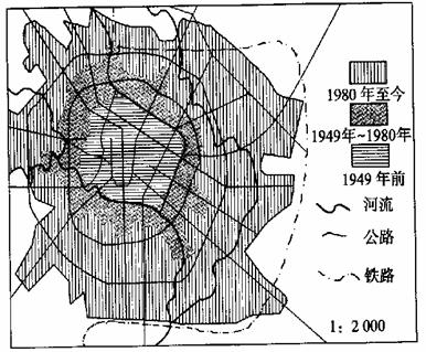 下图为我国东部地区某城市形态变化示意图,据图回答11~13题。