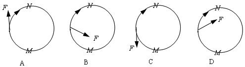 10.一辆汽车在水平公路上转弯,沿曲线由 M 向 N 行驶,速度逐渐增大.如俯视图所示,图中画出汽车转弯是所受的合外力 F ,你认为正确的是