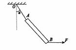 如图所示,一根重G=40N的均匀木棒AB,A端用细绳吊在固定点O上,今用水平力F=30N作用于B端,棒平衡时,下面说法正确的是 ( )