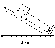 20、在图20中所示的装置中,斜面与水平成37°角,A的质量是10kg,A与B之间的动摩擦因数为0.8,B的质量为5kg,B与斜面之间的动摩擦因数为0.5,为使B沿
