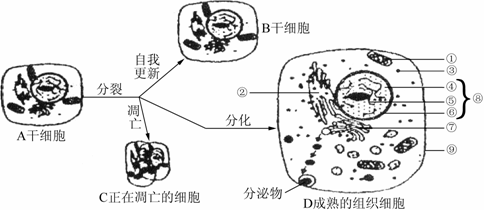 B.若D细胞是胰腺细胞,则结构⑦所起的作用是对蛋白质做进一步加工![]()