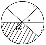 图示70°纬线为某日极昼现象的最低纬度,且此时阴影和非阴影范围为全球两个不同日期。A在P的西北方向,P地6小时后太阳达到该日最大高度。回答1-3题。