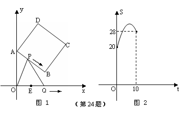 如图1,正方形ABCD的顶点A,B的坐标分别为(0,10),(8,4),顶点C,D在第一象限.点P从点A出发,沿正方形按逆时针方向运动,同时,点Q从点E(4,0)出发,沿x轴正方向以相同速度运动.当点P到达点C时,P,Q两点同时停止运动.设运动时间为t(s).