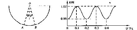 17.在下图所示的装置中,可视为质点的小滑块沿固定的光滑半球形容器内壁,在竖直平面的AB之间简谐振动,用压力传感器测得滑块对器壁的压力大小F随时间