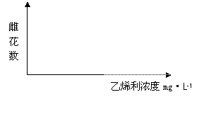 材料用具:2-3片真叶的分栽黄瓜幼苗若干、乙烯利溶液(300mg·L-1)、蒸溜水、喷壶……