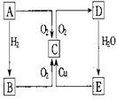 (1)已知A是淡黄色固体,B是有臭鸡蛋气味的有毒气体,B完全燃烧时,能生成使品红试剂褪色的气体C,C能与氧气反应生成D;D溶于水得E。反应关系如图:写出下列物质的化学式:B ,E 将一瓶盛B和一瓶C气体瓶口对接进行混合,瓶壁上能观察到有浅黄色固体和水珠生成,其反应式为: